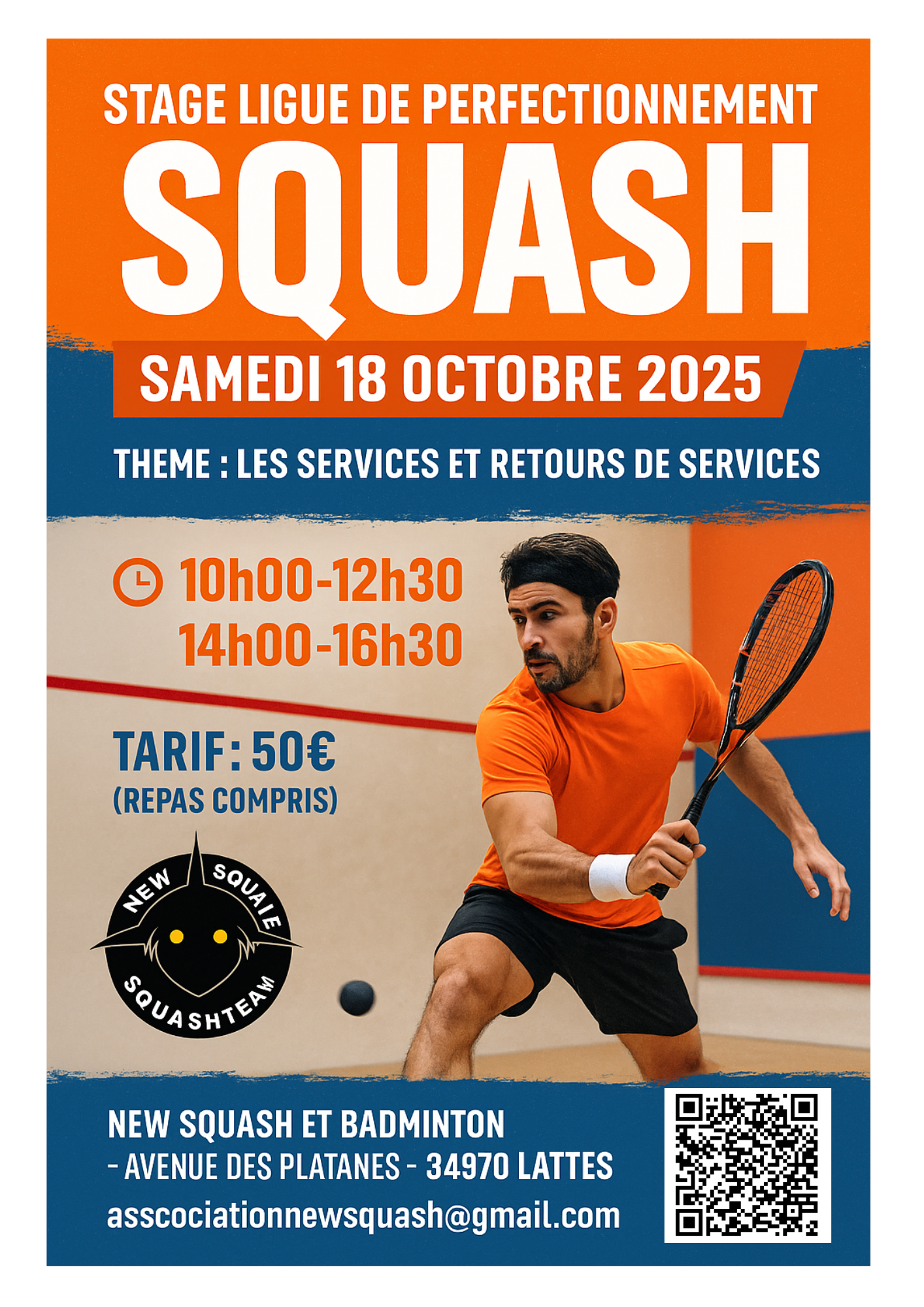Samedi 18 Octobre 2025 dès 10h. L’asso New Squale de Squash organise un stage de ligue de perfectionnement avec Morgan Combes (n°71 Français). […]