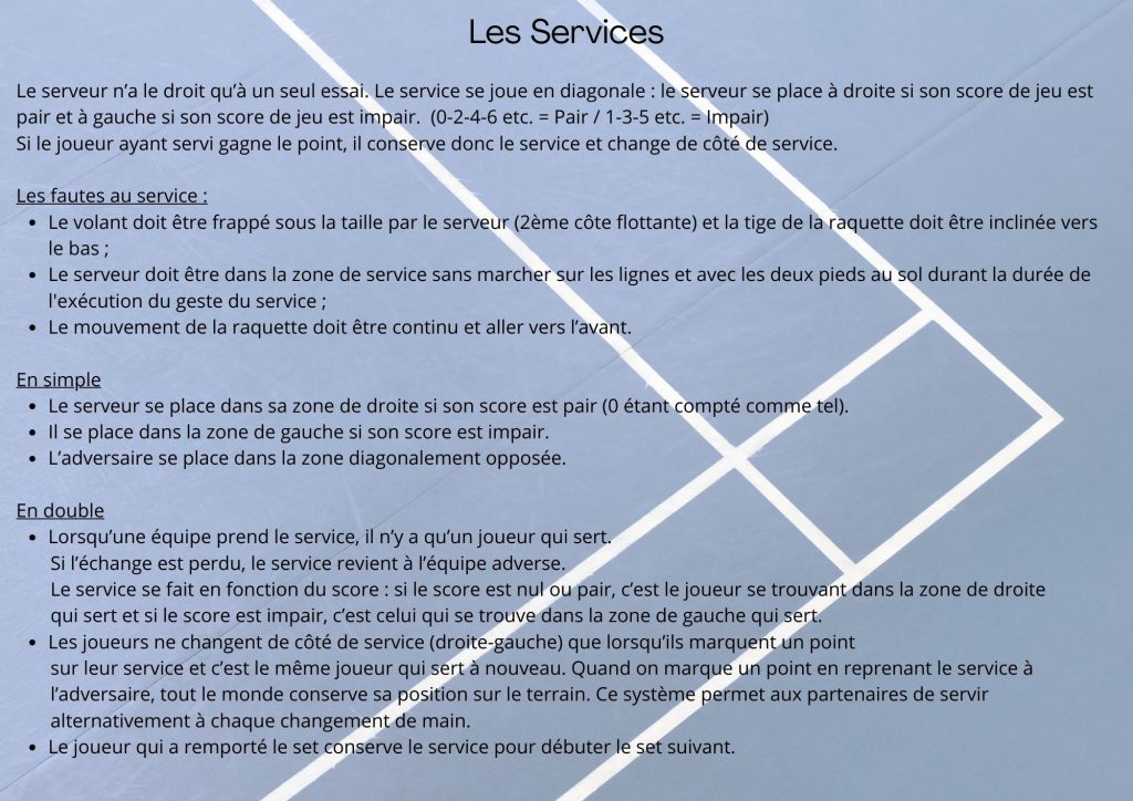 Le Badminton est un sport de raquette ou les adversaires s’échangent un volant au dessus d’un filet. Le Badminton se joue en simple et aussi en double.
